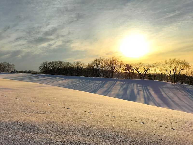 夕陽が沈む様もきれいで、冬には雪がオレンジ色に染まります。