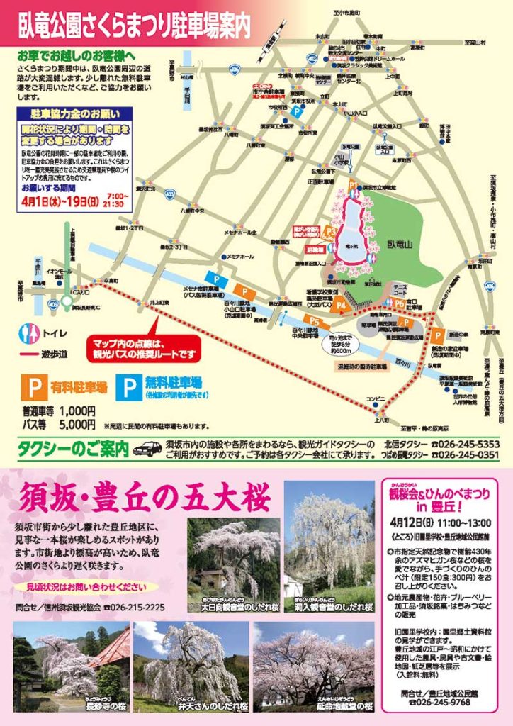 臥竜公園の花見時期について一部の駐車場をご利用の際、駐車協力金のご協力をお願いします。