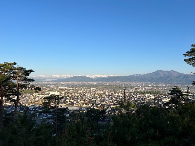 公園の背後にそびえる臥竜山は、手軽に登れる散策コースとして親しまれています。山頂からは須坂市街や北信五岳を望むことができ、四季折々の自然を満喫できます。春は桜、夏は新緑、秋は紅葉、冬は雪景色と、一年を通じて異なる表情を見せるのも魅力です。